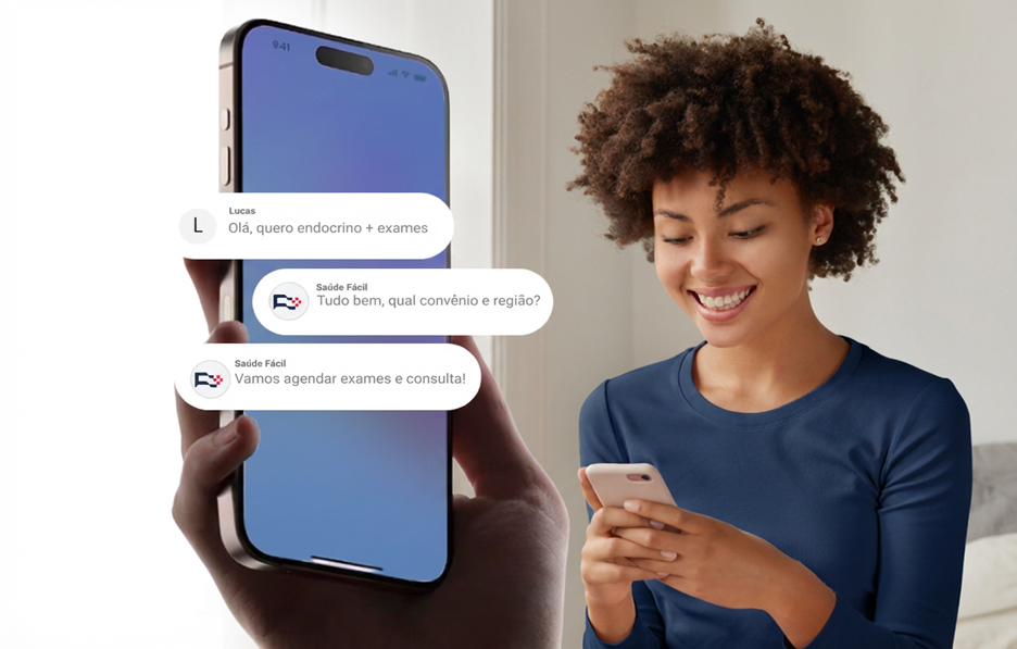 A Saúde Fácil organiza consulta + exames (laboratoriais e de imagem) pelo WhatsApp e encaminha pacientes para parceiros com boa reputação, boa experiência e compatibilidade com convênios e regiões.